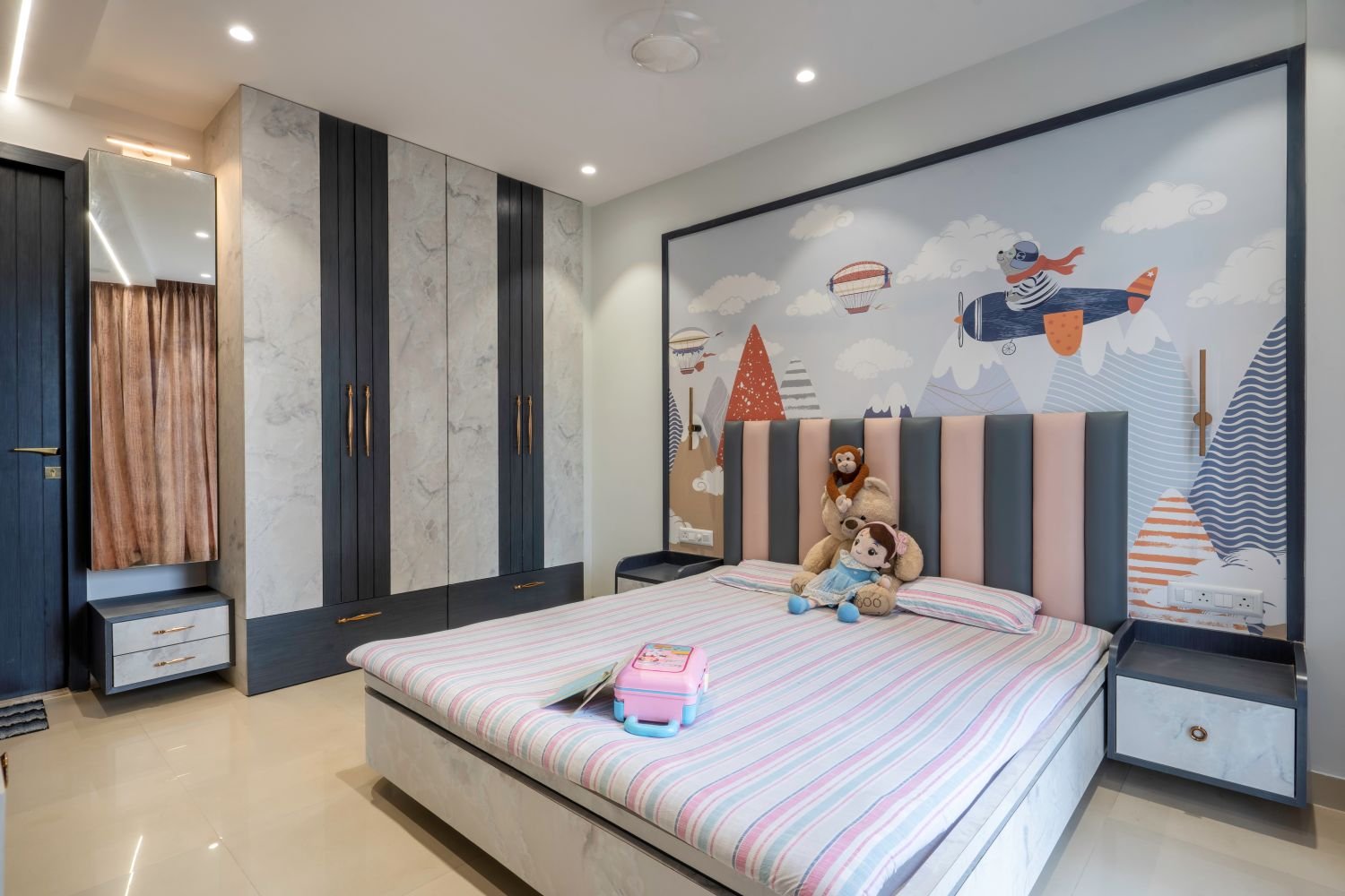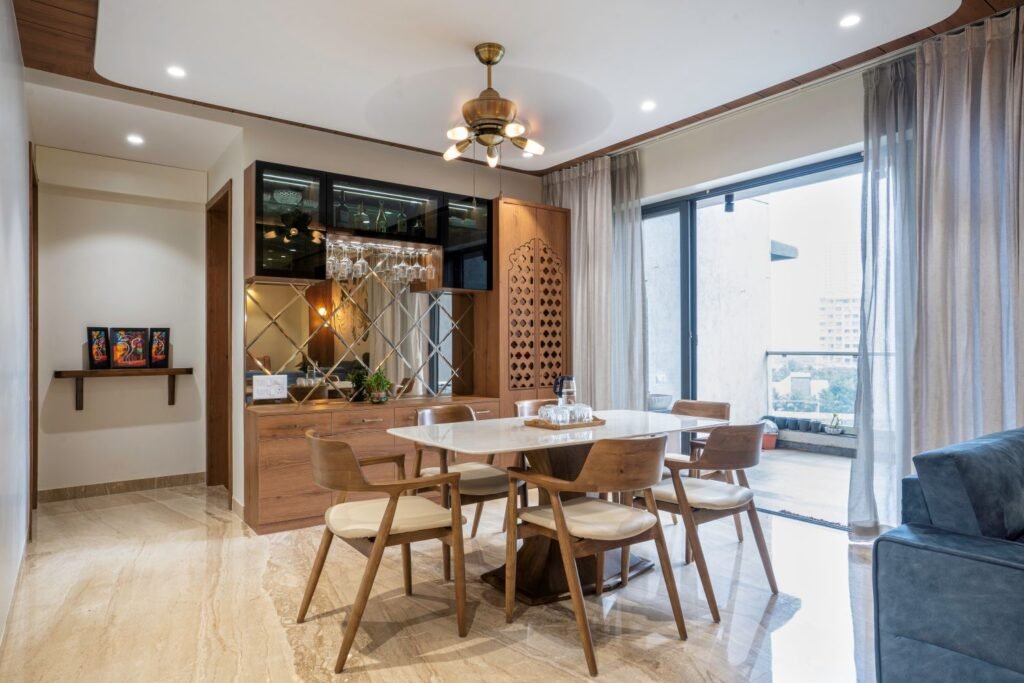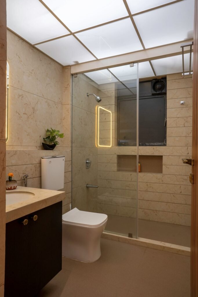 The brief required was, a residence for a couple with their parents and child who desired to fulfil the space requirements with monochrome and subtle palette, with minimalism and clean design.